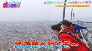 #14でまおりのが朝護孫子寺でお参りしたあと、ワンマン成功祈願のためにバンジージャンプをしました。2人ともよく飛んだ!
